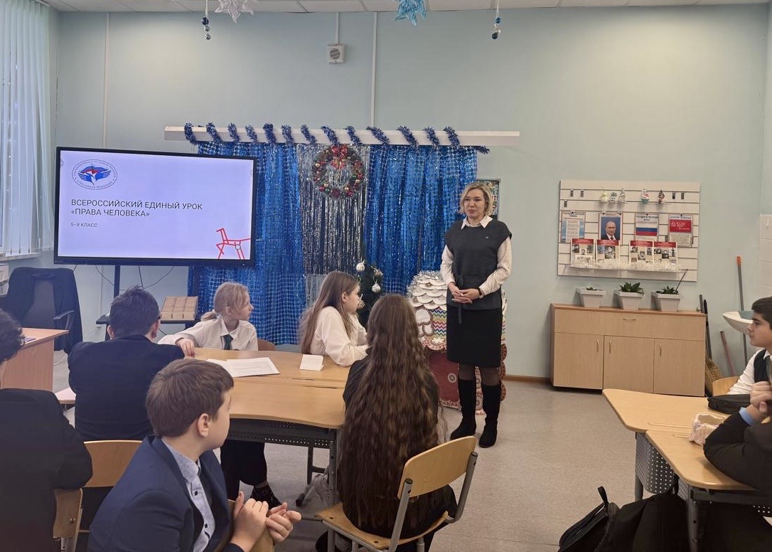 11 декабря Единый урок «Права человека» был проведен главным консультантом аппарата Уполномоченного по правам человека в Брянской области Натальей Жижиной в МБОУ «Средняя общеобразовательная школа № 39 г. Брянска».